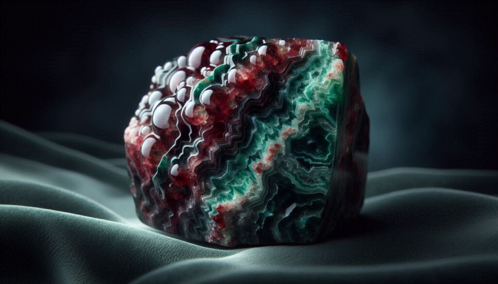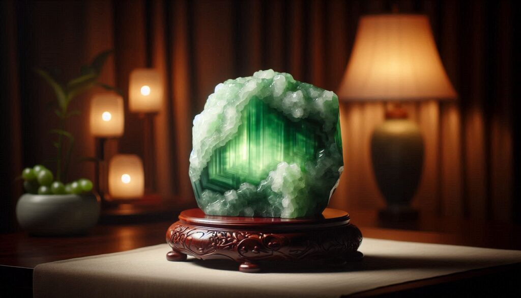Raw pieces feel primal and old-world; polished ones shimmer quietly like moss after rain.